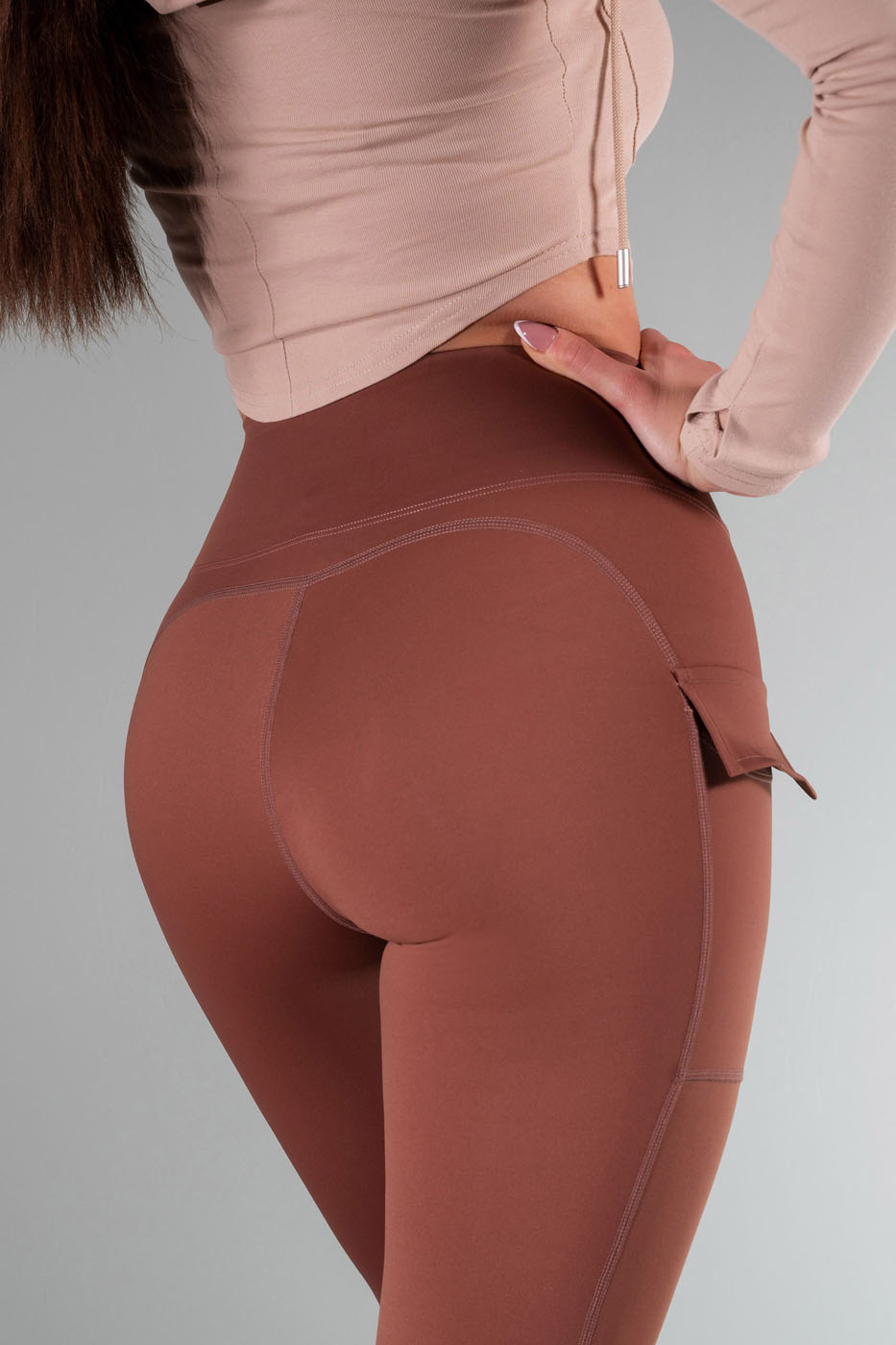 Tajice za fitness, visokog struka, bez push up efekta sa bočnim đepovima.